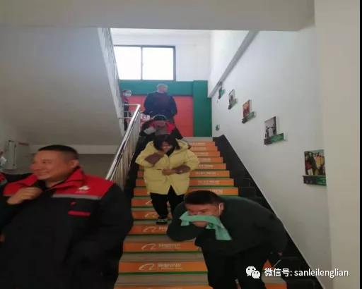 疏散逃生應急演練環節,全體參培人員進行了消防疏散逃生演練,使用濕毛巾捂住口鼻有序快速從三樓培訓室沿梯步沖向園區院壩。